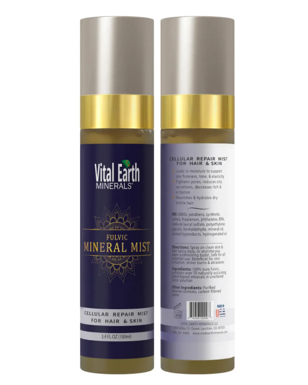 The Fulvic Mineral content helps relieve the appearance of blotchy pigmented skin. Cellular renewal assists with skin irritations, as well as maintaining normal pore size. Fulvic contains the minerals needed to support normal collagen production naturally and assists production of new cells for long-term skin rejuvenation. Mineral Mist is packed with nourishing micro-filtered Fulvic Minerals and nothing else.
